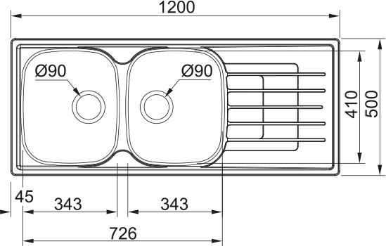 External size: right to left 1200 mm