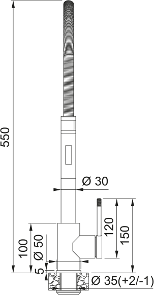 Saturn Professional Mixer,Stainless Steel finish. Overall height 550mm, with flexible steel spring hose, hand spray holder and dual spray function. 15 Year warranty on body construction.
